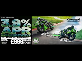 The Ninja ZX-4RR and Ninja ZX-6R are now available with 3.9% APR on HP or 4.9% APR Representative on PCP.